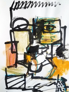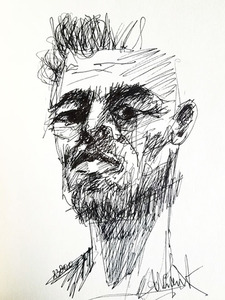Sporadisch maak ik portretjes. Vaak snelle krabbels tijdens bijvoorbeeld een telefoongesprek.